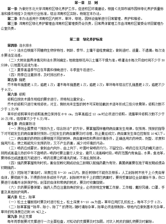 浑南校区绿化养护管理办法(暂行)