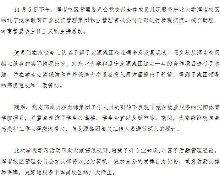 浑南校区管理委员会党支部到辽宁龙源集团参观交流