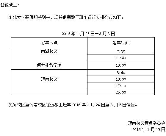 教工班车寒假运行安排