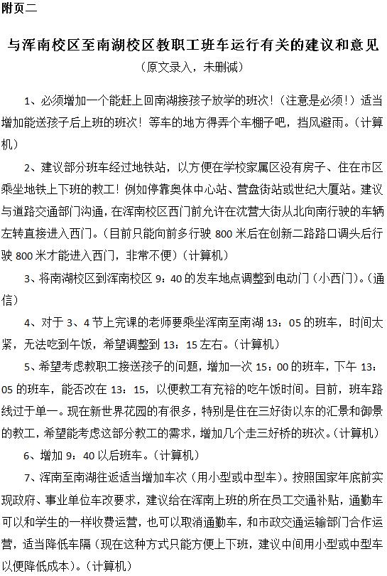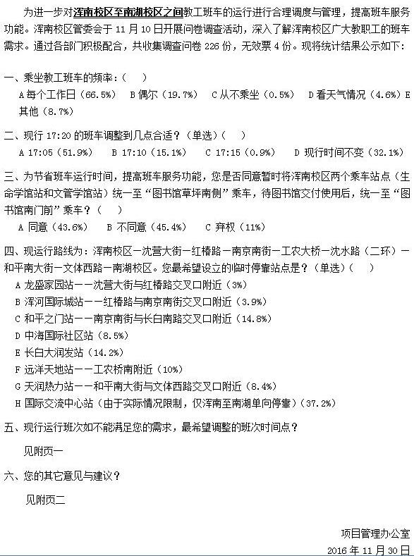 东北大学浑南校区教工班车运行需求调查问卷结果公示
