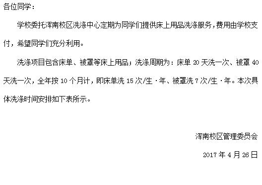 关于“学生床上用品定期免费洗涤”的通知