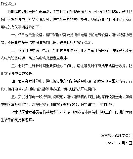 关于浑南校区安全用电的提示