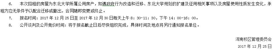 东北大学房产公开招租公告(20171225)