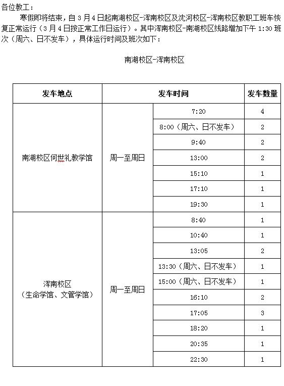 关于教职工班车恢复正常运行及班次调整的通知