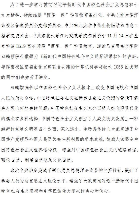 浑南校区管理委员会党支部、中荷生物医学与信息工程学院党委、江河建筑学院党委联合举办“两学一做”学习教育主题讲座