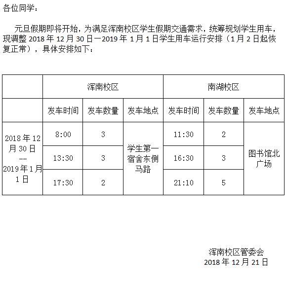 关于元旦假期学生用车运行安排通知