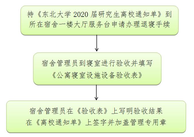 注:浑南校区2020届研究生退宿手续全部在所在宿舍一楼大厅服务台办理,未在住毕业生可任选2号、3号、5号学生宿舍服务台办理,无需前往生命学馆。办理退宿手续后床位不允许继续使用。浑南校区管理委员会2019年12月25日